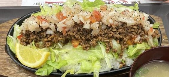 タコライスはスパイスとトマトの酸味が絶妙にマッチしており、癖になる味わい!大盛もペロッといけちゃいます。